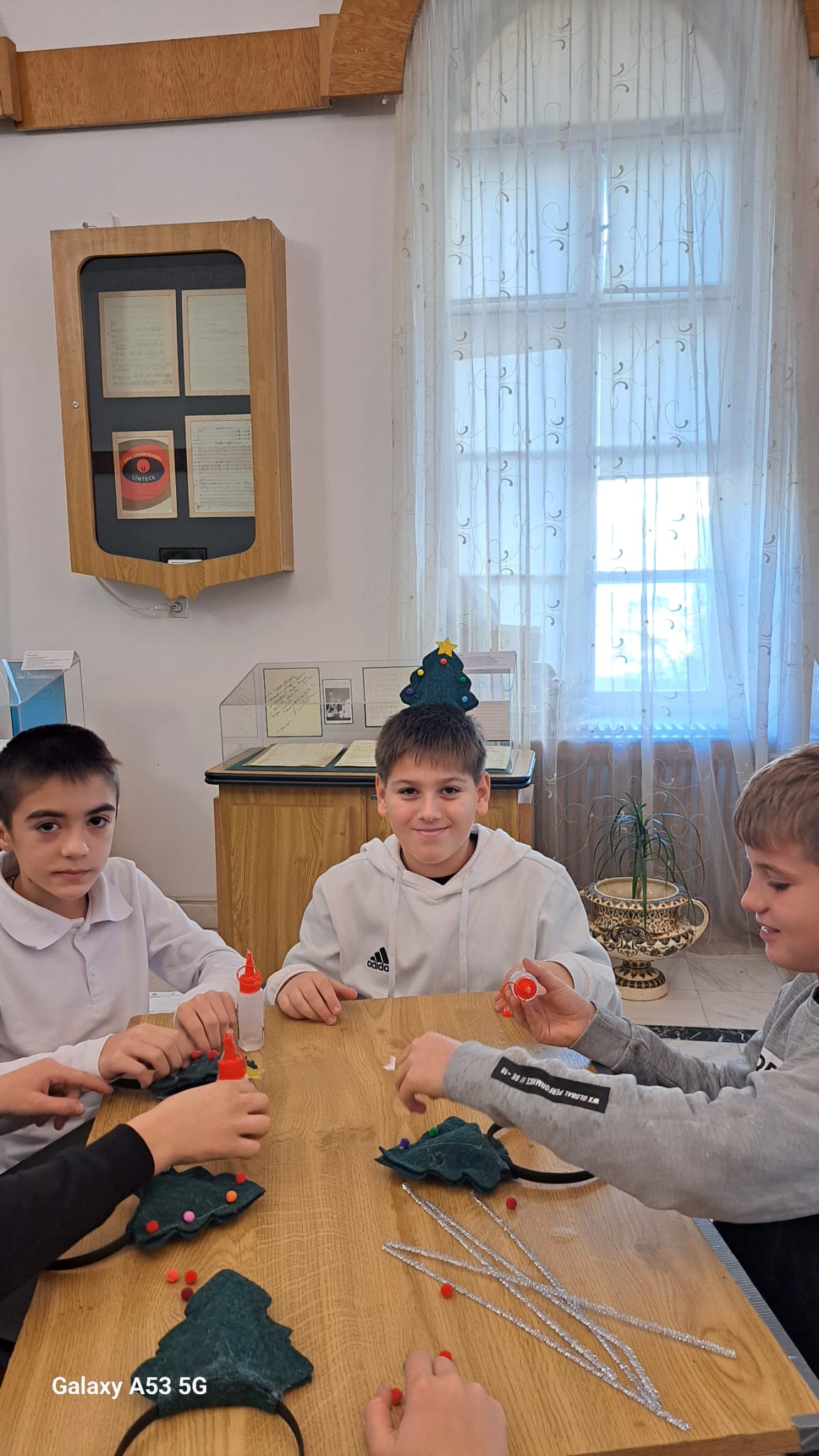 Povestea noastră a continuat cu un atelier in care copiii au confecționat ornamente pentru brad, iar la final, respectând tradiția, am și colindat, completând astfel atmosfera de emoție sufletească. Practic, prin colindul copiilor ce au suflete pure am împlinit, ceea ce dna etnograf a explicat, la un moment dat, purificarea casei, a spațiului, regenerarea pentru un an nou prosper și plin de sănătate.