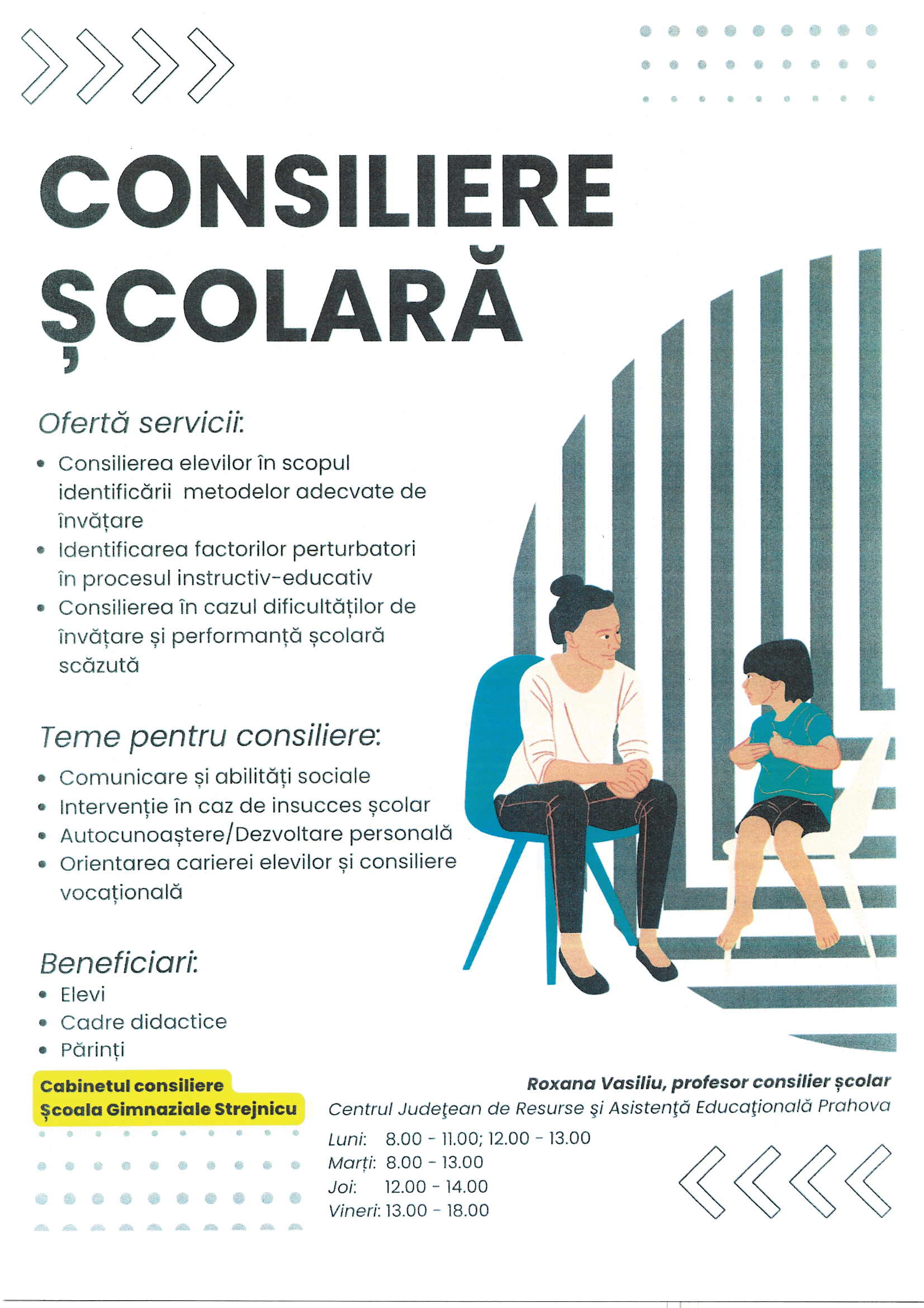 Program consiliere școlară pentru Elevi, Cadre didactice si Parinți: