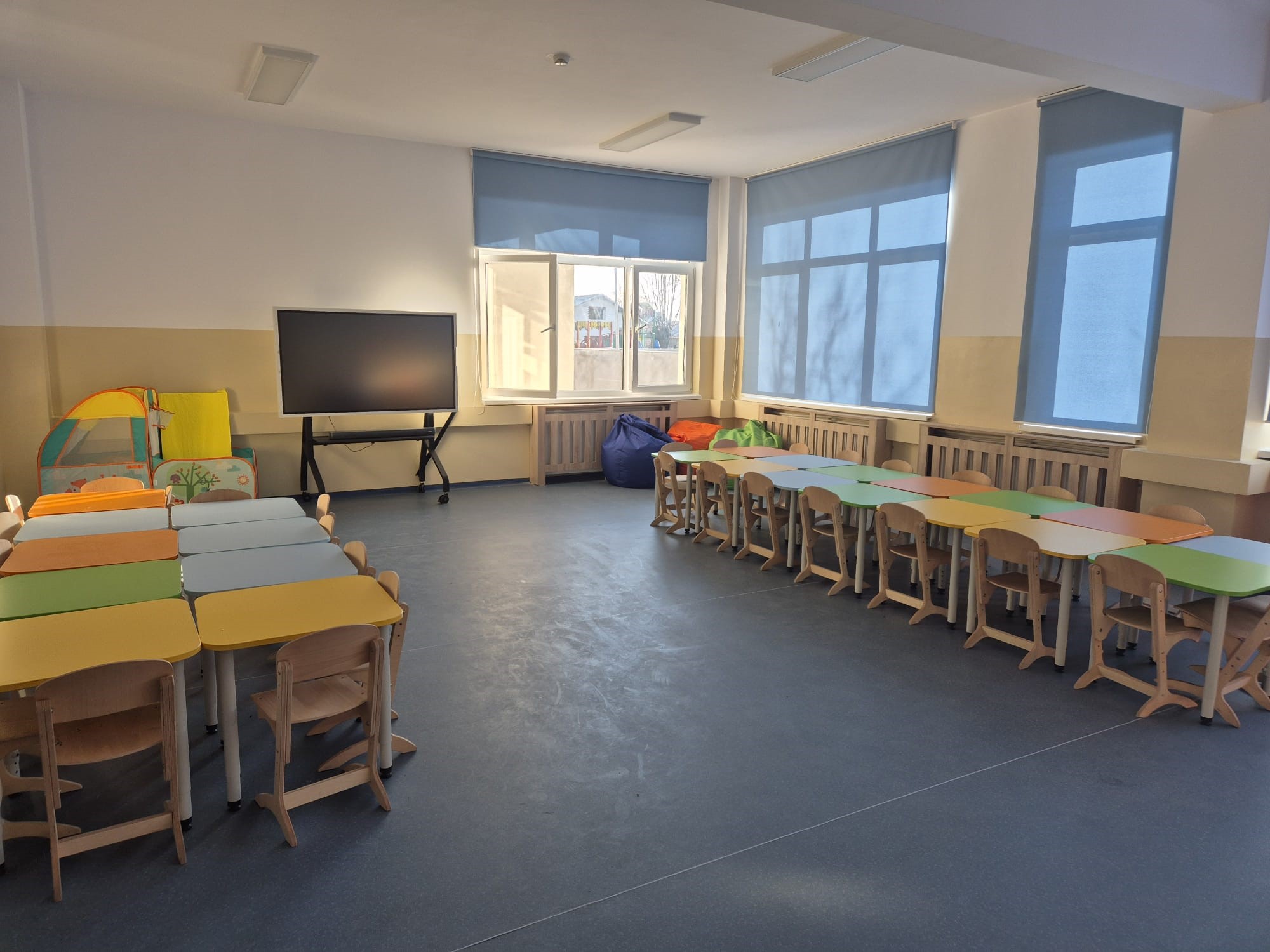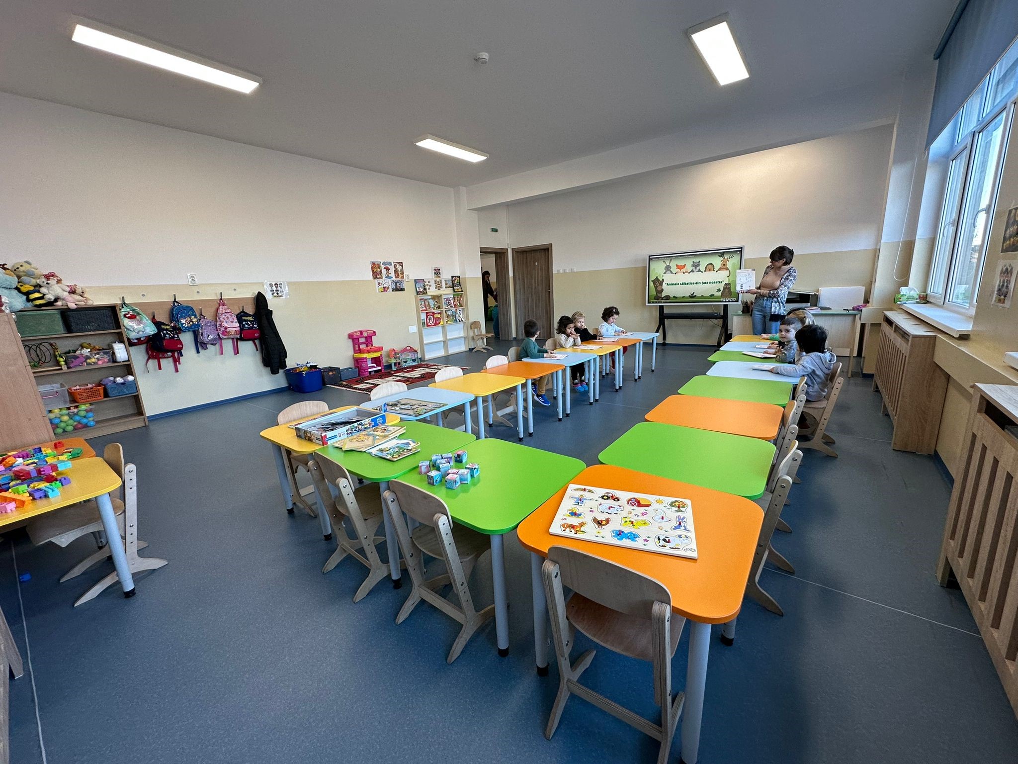 Grădinița are patru săli de clasă spaţioase, luminoase, dotate cu mobilier adecvat, o cancelarie, sală pentru centrala termică, doua grupuri sanitare, hol, spațiu pentru material didactic. Există locuri de joacă și în interior și în exterior. În curtea grădiniței este amenajat un spațiu de joacă adecvat vârstei preșcolarilor.